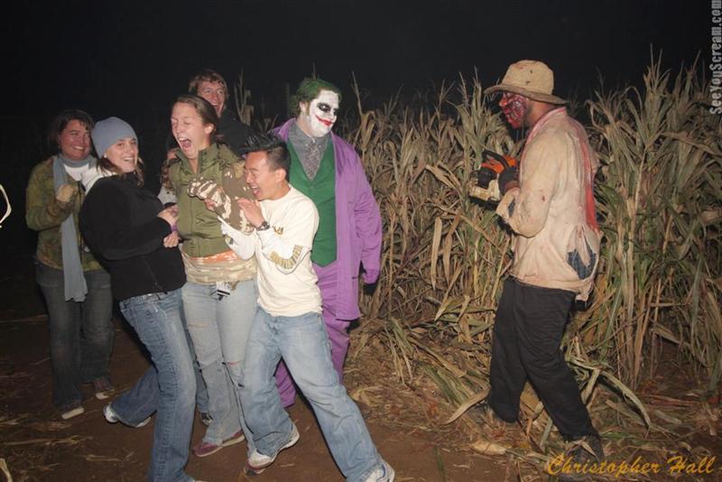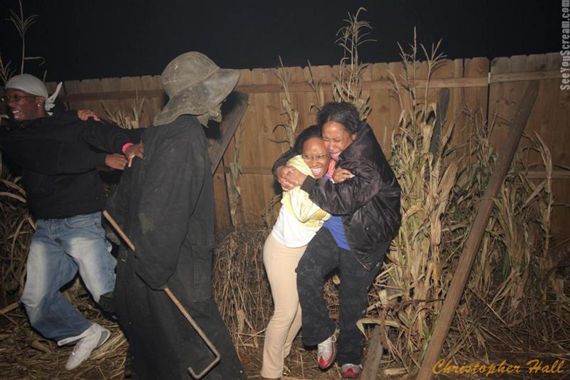 After being rained out the previous scheduled shooting night, I returned to Woods of Terror on Halloween to round out this year's picture collection.  My favorite place for scares has to be the scarecrow at the end of the Jeepers Creepers scene.  I stood in the middle of the exit, clearly visible to those following the trail.  This served as a really fun distraction for the scarecrow, who was up against the wall on my left or right.  Scares galore!