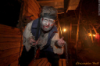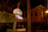 As fun as shooting scares can be, I concentrated on getting some good shots of actors and scenes.  During the night, I visited the graveyard and asked the corpse bride to stand in front of a bright green light.  The combination of fog from the green light an a nice, balancing red on her dress made an impressive picture.  It was with this shot I picked up a new technique; shooting into the light while using an actor to block it or placing the light to the side, plus using a fill-in flash.  It may sound easy and obvious in retrospect, but applying and using it sensibly in the field is the kicker.  For one, I discovered, I really do need fog to make it work--and fog is a fickle beast.